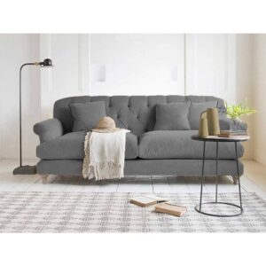 كنبة بثلاثة مقاعد خشب زان وقماش كتان - رمادي